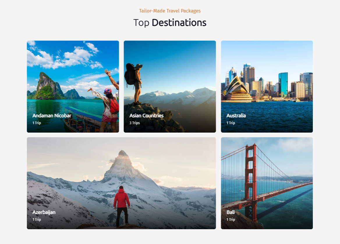 A dedicated booking system was implemented to allow customers to easily submit trip details, select packages and request travel arrangements directly through the website. The system was structured to collect essential booking information in an organized and user-friendly format.<br /> This ensures the agency can efficiently manage inquiries and convert website visitors into confirmed travel clients.